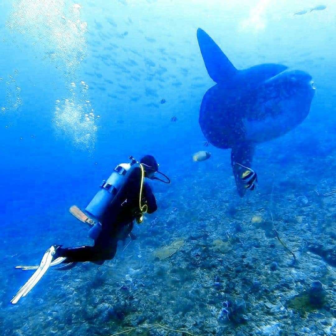 Gamat Bay is also one of the most beautiful scuba diving spots in Nusa Penida. The reason is, the bay is a plateau with a depth of about 8 meters, full of coral. And you will also often see turtles. Hence, a good place to do discovery dives when conditions are good. Especially if there is no current at high tide. And at the exit of the bay was a wall that descended into the sand plain 50 meters deep.